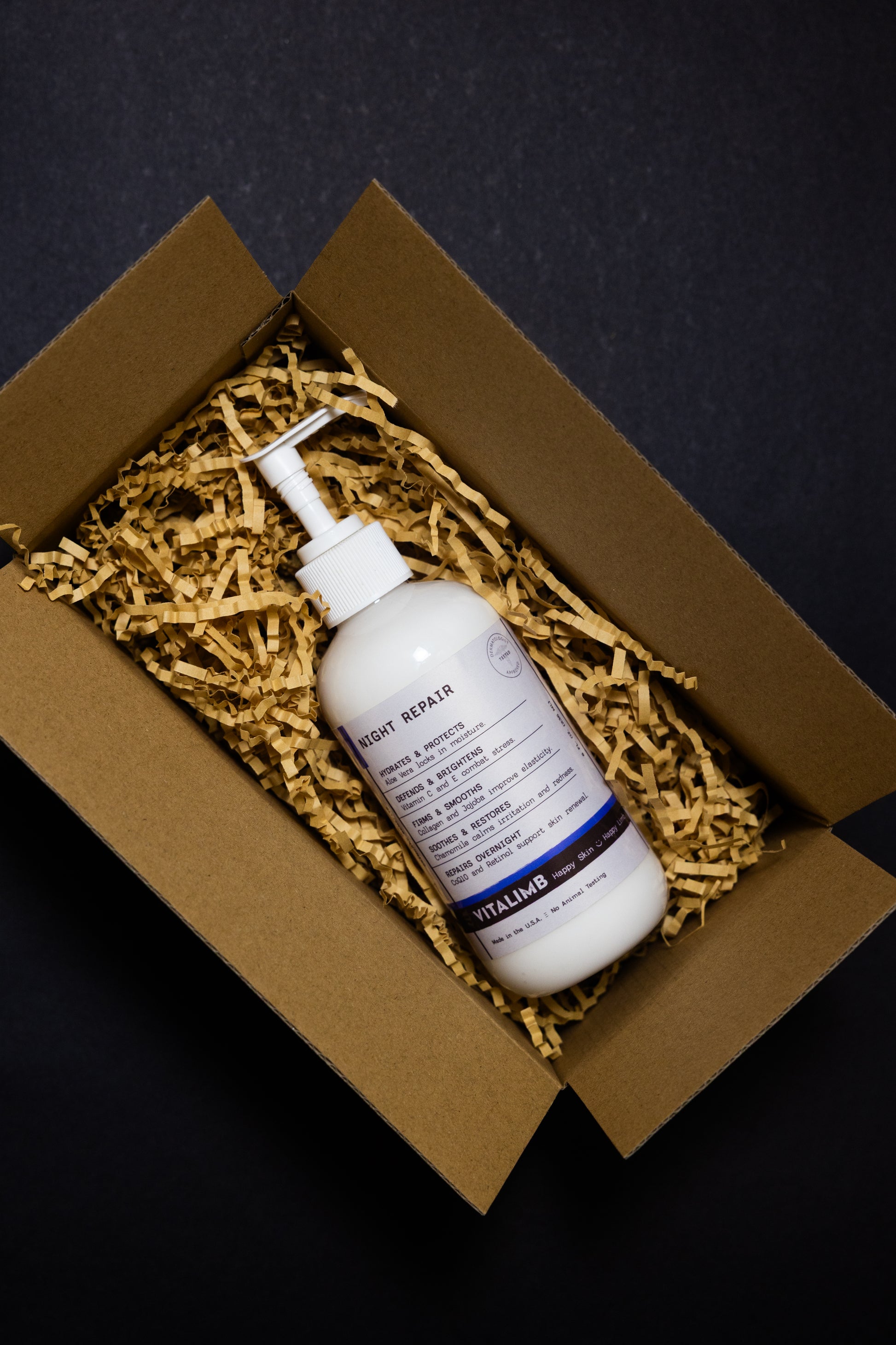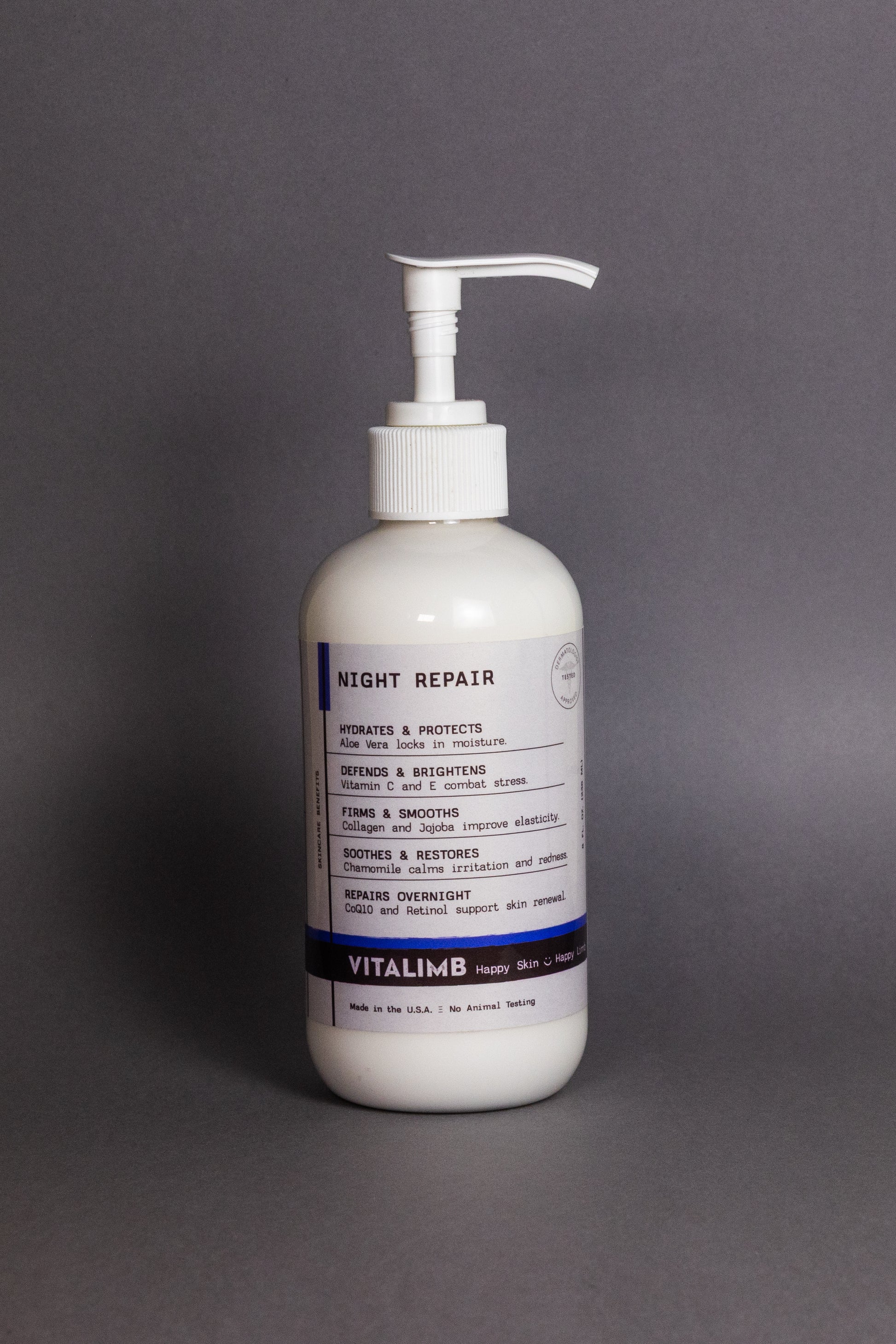 VitaLimb Night Repair is specifically formulated for amputees to support overnight skin recovery. After a full day inside your prosthesis, your limb needs targeted care to repair micro-irritations, replenish moisture, and strengthen the skin barrier — all while you rest.